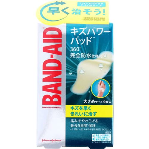 絆創膏 完全防水 バンドエイド キズパワーパッド 大きい 大きめサイズ 6枚入 70×44mm