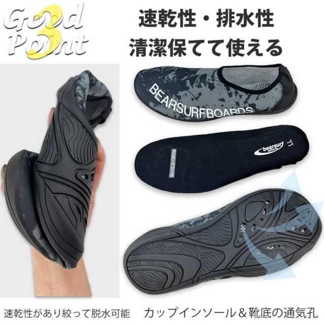 | 【商品説明】 | 海の暑い砂浜や川の岩場など、素足で行うレジャーには擦り傷や