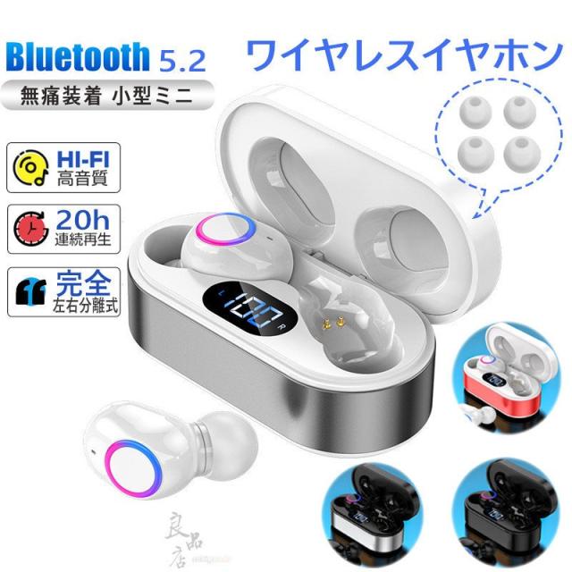 ワイヤレスイヤホン iPhone android 小型 bluetooth5.2 両耳 防水 ブルートゥース イヤフォン コンパクト HiFi 高音質 重低音 スポーツ 最新型