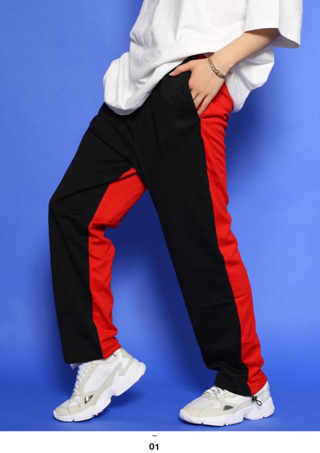 ACEFLAG ロングパンツ スウェットパンツ レディース 春夏秋冬用 黒赤 大きいサイズ エースフラッグ スウェット ジャージ ゆったり 無地 ミニマル バイカラー 切り替え ファッション ブランド AF-LP-SW-001-BR
