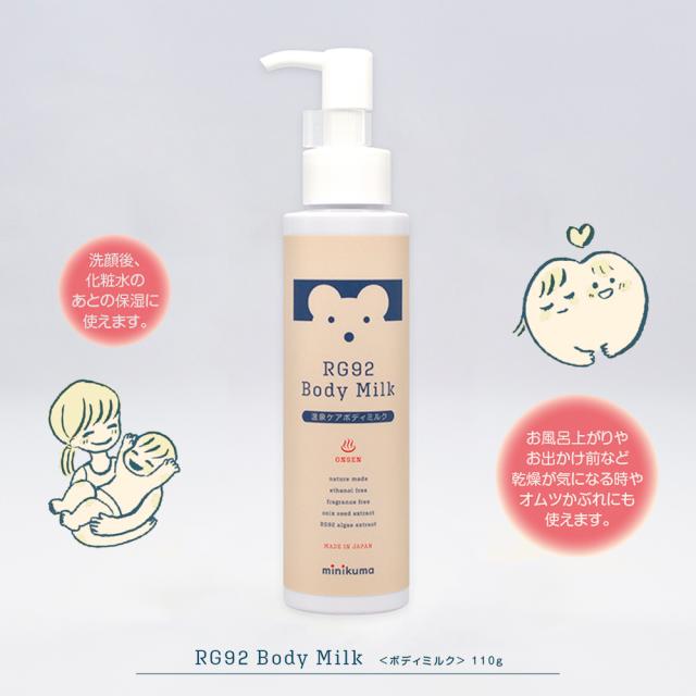 赤ちゃんとママのために、別府の温泉研究から生まれたスキンケア「minikuma」。本製品は、肌にうるおいを与えながら、敏感肌や乾燥による肌トラブルをやさしく防ぐ【無添加処方のボディミルク】です。