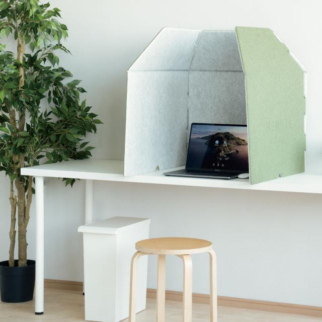吸音効果で相手に届くノイズを軽減する『リミュートシリーズ』のデスクブースです。テレワークの相手に自分の声以外のノイズが届きにくくなり、スムーズに会話ができます。また、周囲のノイズを低減することで、周りを気にせず集中できます。