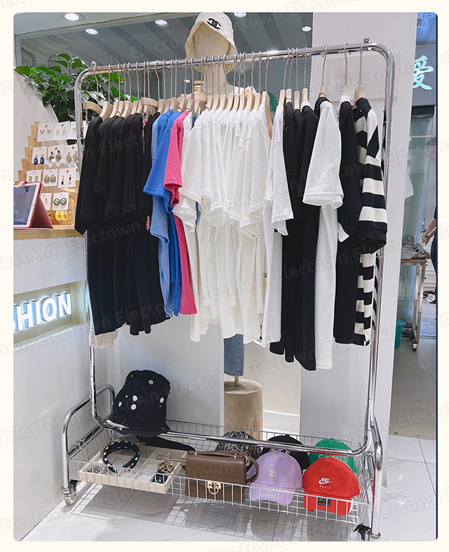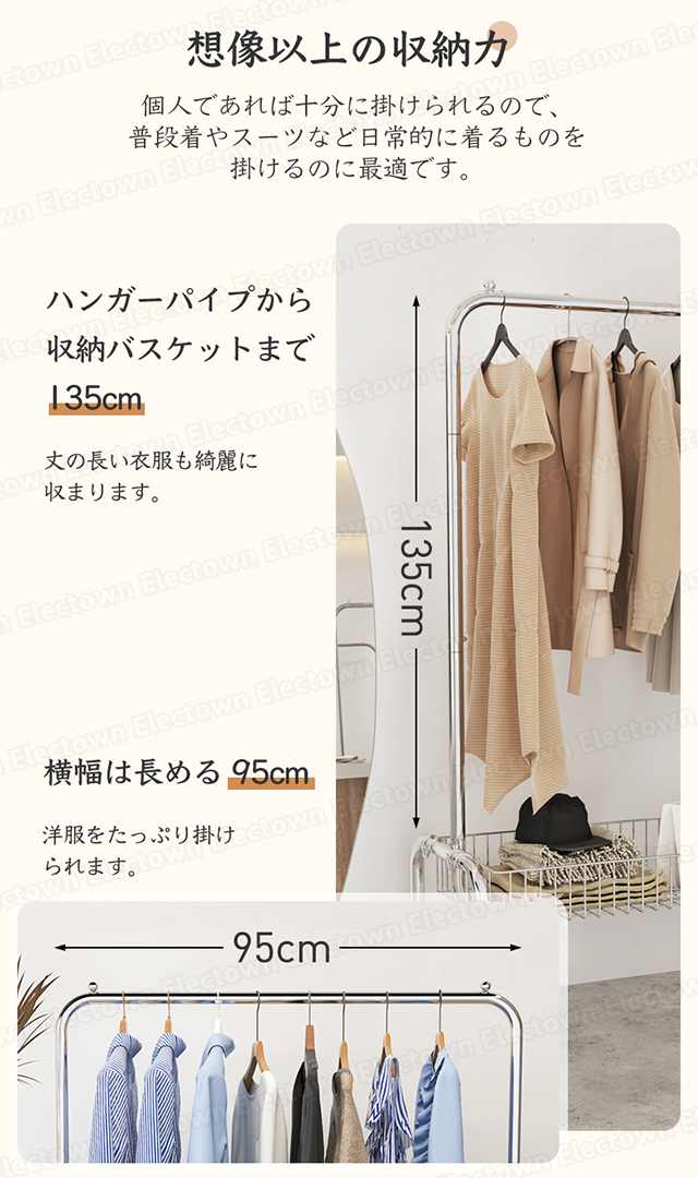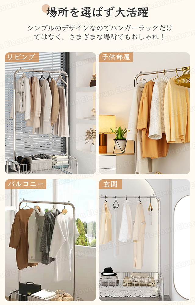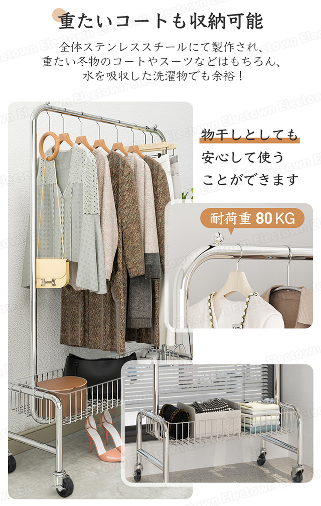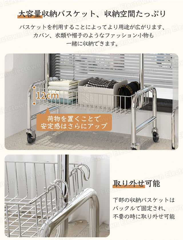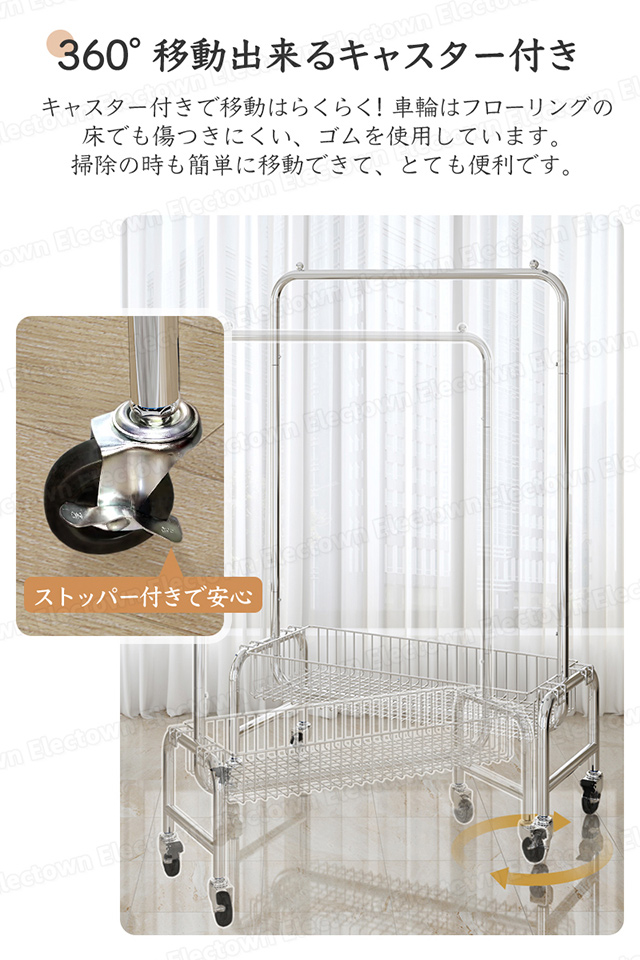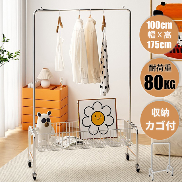 「クーポン配布中」「即納」ハンガーラック パイプハンガー 100cm幅 収納棚付き 収納カゴ付き ステンレス 頑丈ハンガー キャスター付き 衣類 収納 子供 洋服掛け コートハンガー 物干しハンガー 部屋干し 洗濯物干 家族収納 新生活