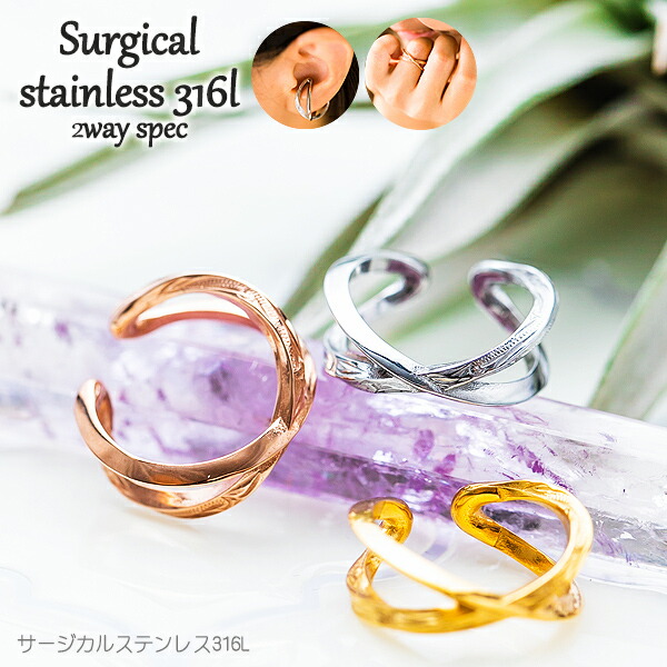 ハワイアンジュエリー イヤーカフ レディース メンズ 2way リング 指輪 サージカルステンレス イヤーカフス イヤカフ 女性 ウェアリング ノンホール イヤリング 片耳用 クロスモチーフ 金属アレルギー対応 大人 シンプル henoheno