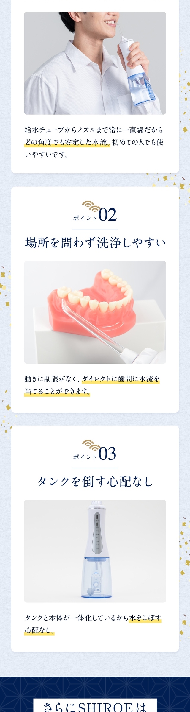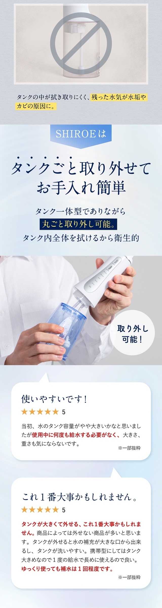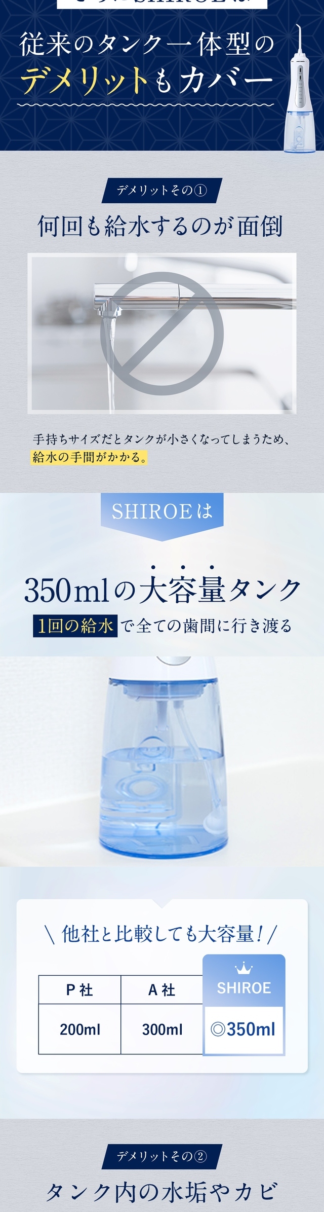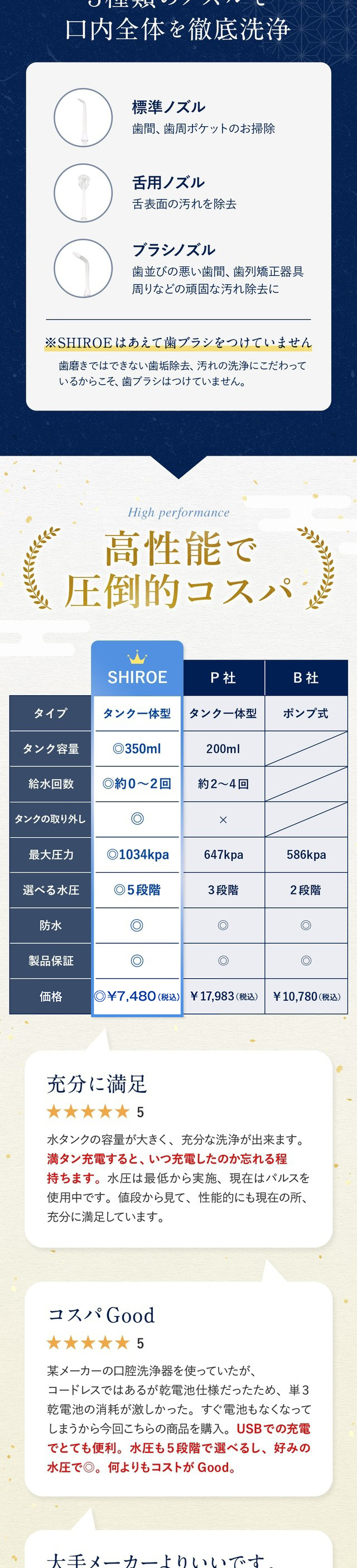 ジェットウォッシャー 口腔洗浄器【SHIROE ジェットウォッシャー】口腔洗浄機 ウォーターフロス ウォーターピック 防水 フロス デンタルフロス 歯間ブラシ 歯間 糸ようじ 奥歯 歯磨き 虫歯 歯周病 口臭 歯垢 プラーク 歯石 歯周ポケット 治療歯 しろえ