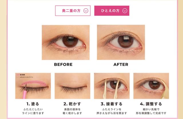 ふたえラインをのりで固定するタイプ