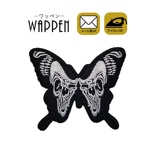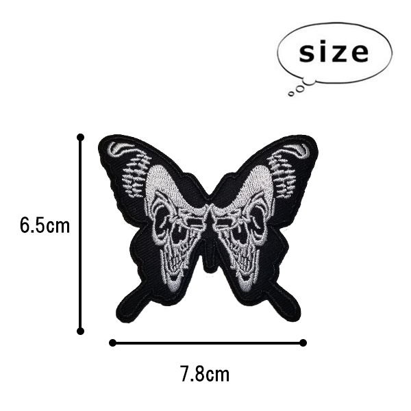 ワッペン 刺繍 アイロン接着 縦6.5cm×横7.8cm 蝶 チョウ ドクロ かわいい アップリケ 手芸母の日 プレゼント ギフト