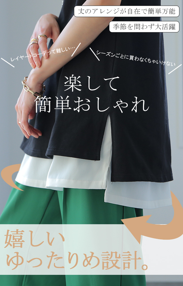 プラスワンで着こなしの幅が広がるレイヤード風付け裾です。