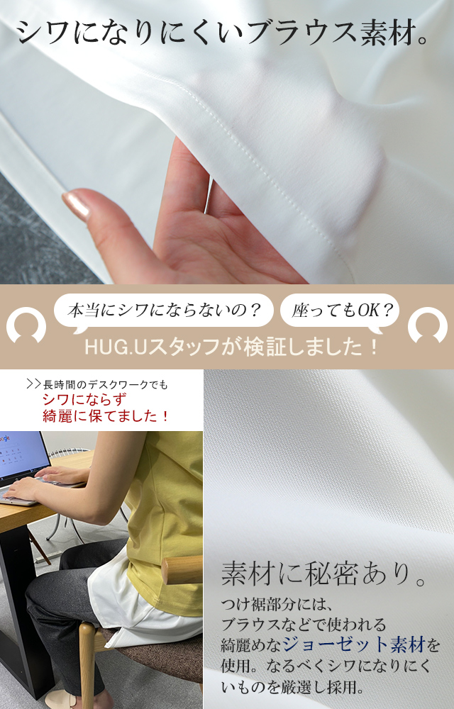 送料無料 【締め付けゼロ】 付け裾 ブラウス 一部2月下旬入荷 メール便 レイヤード つけ裾 トップス 着け裾 重ね着風 腹巻き 体型カバー レディース Tシャツ インナー フェイクレイヤード 裾フリル 大きいサイズ 黒 白 HUG.U ホワイト ブラック スリット 夏 秋 秋新作