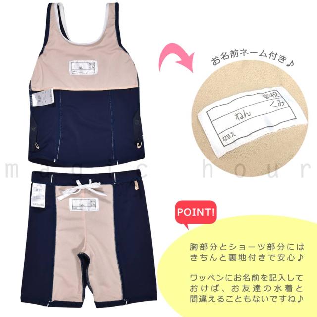 スクール水着 女子 スイムウェア セパレーツ タンキニ 定番 水着 ブランド 子供 セット プール 紺 ネイビー 120cm 130cm 140cm 150cm 160cm 170cm