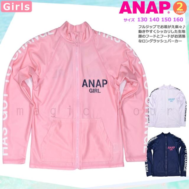 ラッシュガード キッズ 子供 長袖 UVカット 水着 女の子 ANAP ガールズ ブランド ジップアップ パーカー UPF50+ 女の子 女児 ブルゾン ピンク 130 140 150 160cm