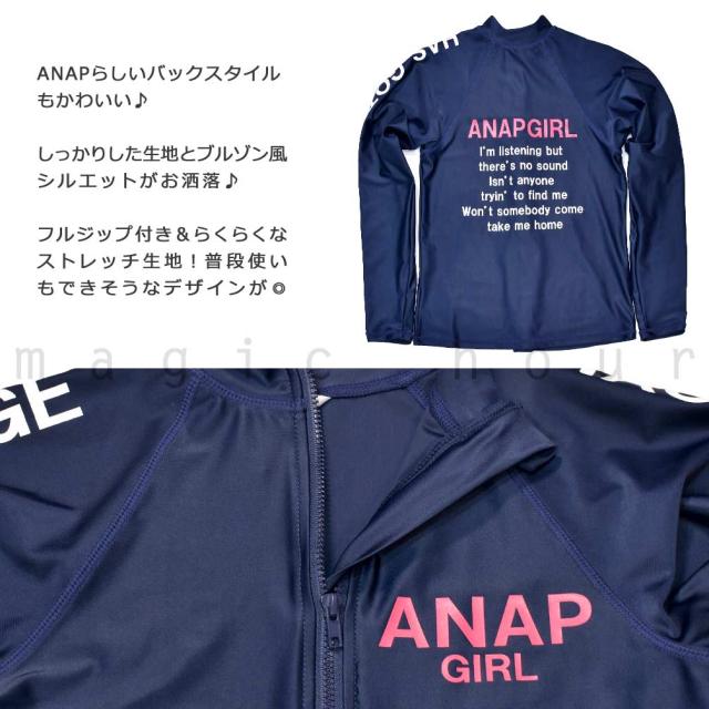 検) アナップ 紺 青 ネイビー 白 ホワイト バックプリント ロゴ 子供用 こども おんなのこ 日焼け防止 紫外線対策 ラッシュ 女子 水泳 お洒落 可愛い フード付き 人気 プール スイミング スイムウェア おしゃれ カワイイ 小学生 高学年 シュノーケル スノーケル 水遊び