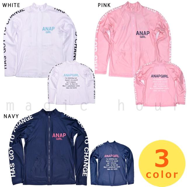 ◆ ラッシュガード キッズ ジュニア ガールズ 長袖 ANAP アナップ UVカット フルジップ ラッシュパーカー UPF50+ ◆