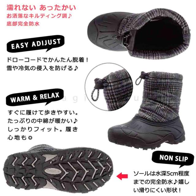 スノーブーツ ウィンターブーツ メンズ レディース 底部 防水 はっ水 防寒 お洒落 スノーシューズ 中綿 撥水 雪靴 カジュアル アウトドア アルバートル チェック