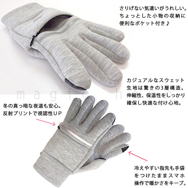 ◆ レディース 防寒 グローブ スマホ対応 ポケット付 カジュアル ウォーム 手袋 AIRスウェット ◆
