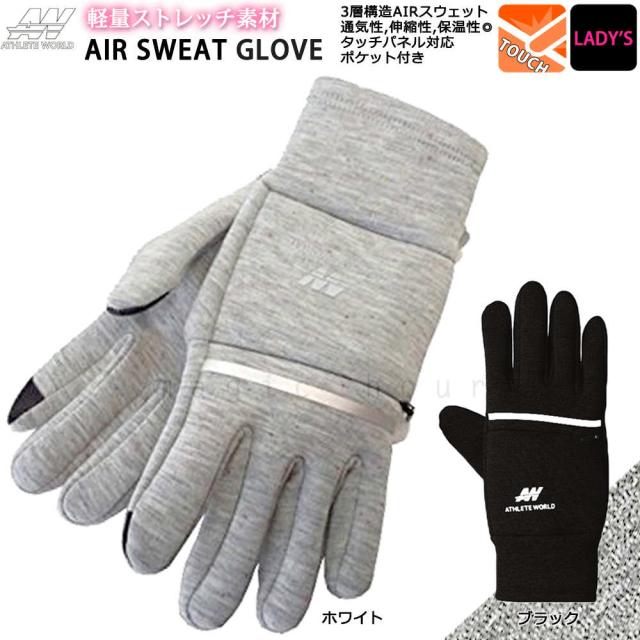 レディース 防寒 グローブ スマホ対応 ポケット付 カジュアル 手袋 AIRスウェット 自転車 ウォーキング ストレッチ グローブ ATHLETE WORLD アスリート ワールド