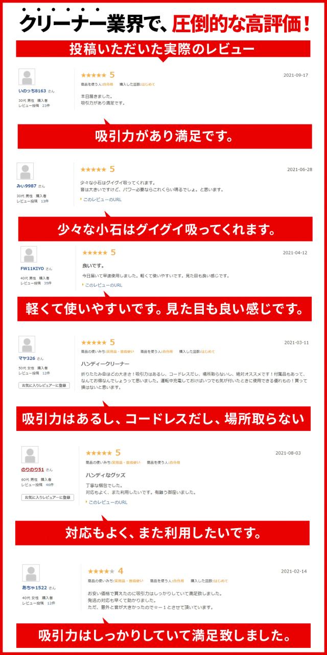 - コードレスなので、手軽にお掃除出来て助かります。