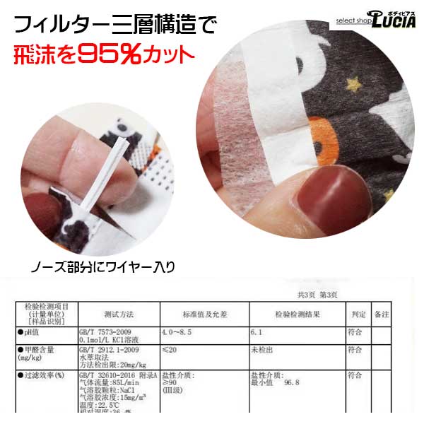 飛沫95%カット三層フィルター構造で安心の品質