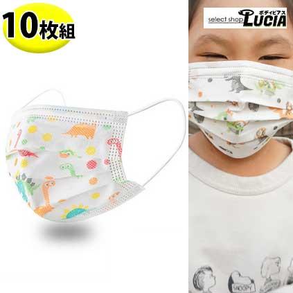 本日P2倍 訳あり 10枚組 不織布マスク プリーツ 恐竜 子供 かわいい かっこいい 女の子 男の子カラフル 柄 除菌