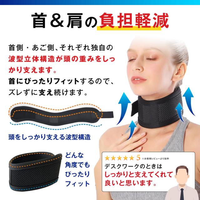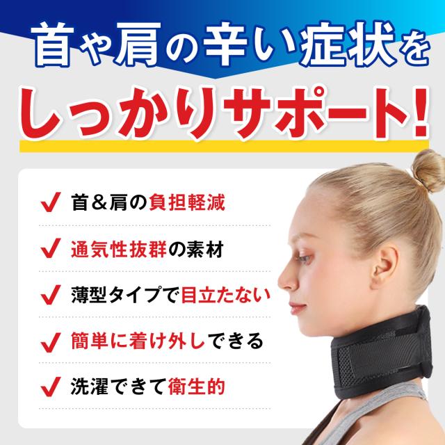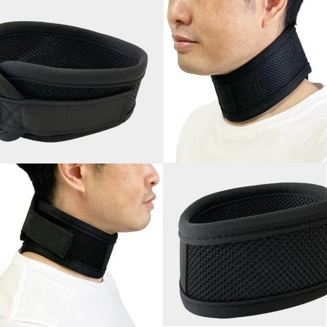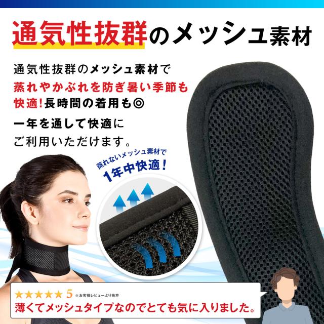 首サポーター 薄型 頚椎カラー ネックレスト メッシュタイプ 春 夏 秋 冬 コルセット 首固定 寝るとき ネックサポーター 男女兼用 メッシュ 生地 目立たないストレートネック 頸 保護 解消 予防 サポート マジックテープ 黒 ブラック 送料無料