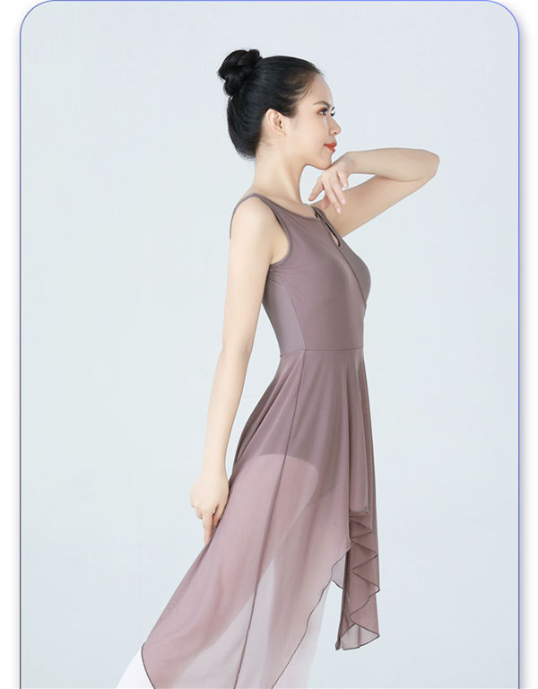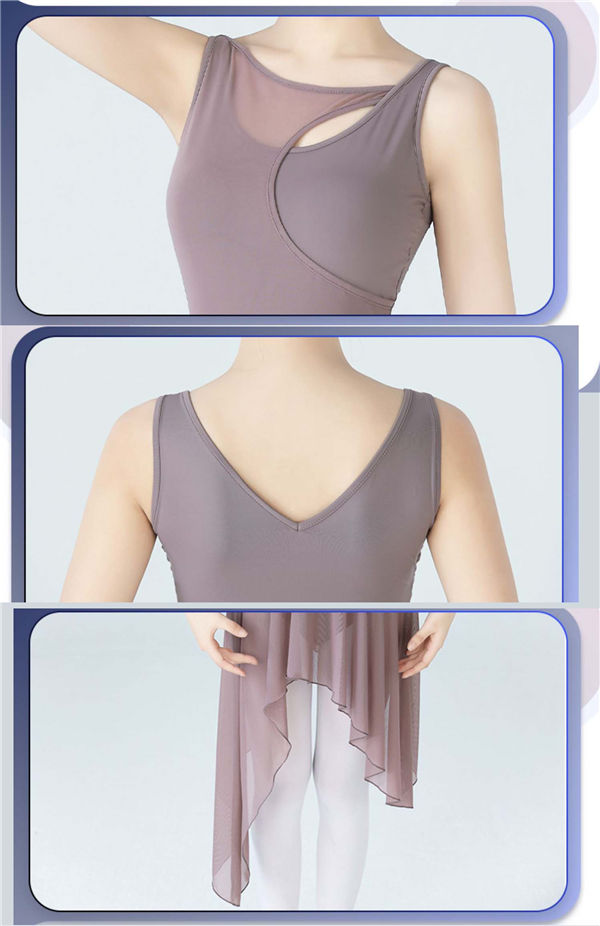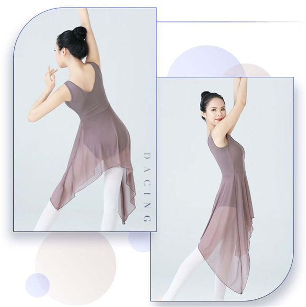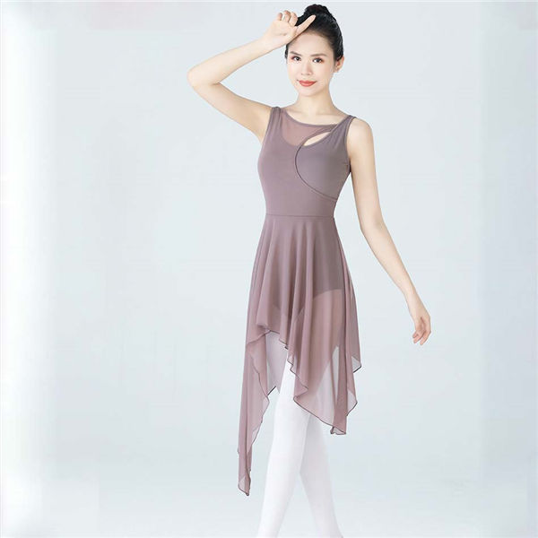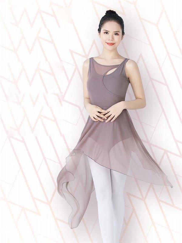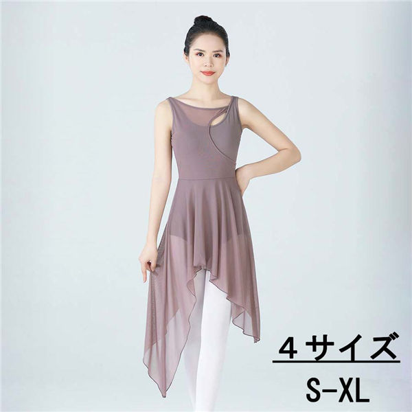バレエ レオタード レディース 大人 袖なし 透け感 ノースリーブ イレギュラーヘム ワンピース バレエウェア バレリーナ 衣装 ダンス ダンスウエア ユニフォーム シースルー レッスン着 肌透け 大きいサイズ お洒落 練習着 可愛い ローズグレー S M L XL d1455d3d3c9