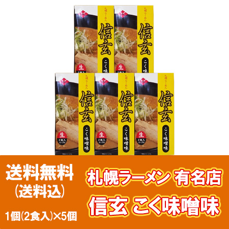 札幌ラーメン 味噌 送料無料 札幌 ラーメン 信玄 生ラーメン しんげん みそ ラーメン 味噌ラーメン 有名店 生麺 こく味噌味 化粧箱 1個(2食入)×5 味噌 ラーメン 麺類