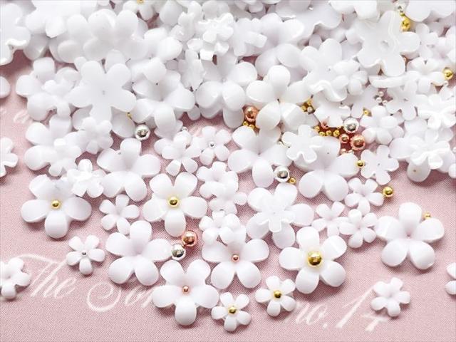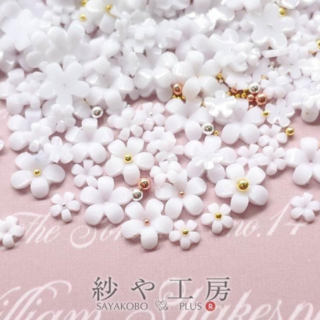 フラワーパーツ お花 小さい アクセサリー パーツ ホワイト 6mm 約500個 サイズミックス カボション 封入素材 レジン封入 ネイルパーツ 花 ブリオン 問屋 封入パーツ レジン封入 貼り付け 花びら WHITE さや工房 手作り アクセサリーパーツ 卸 おすすめ