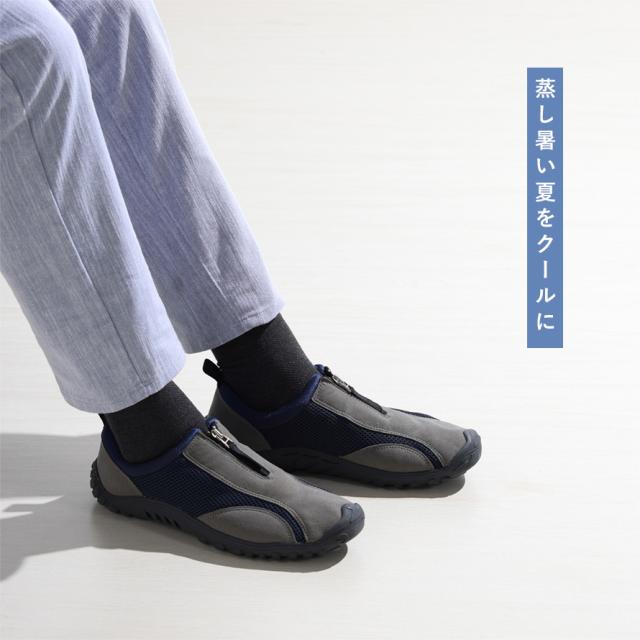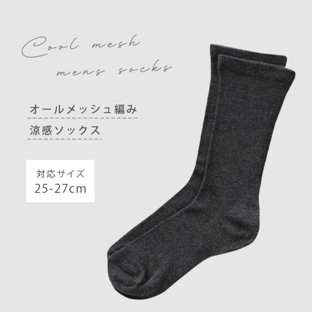 履いた瞬間ひんやり涼しい、接触冷感素材のメンズソックス。素足に近い薄手メッシュ。