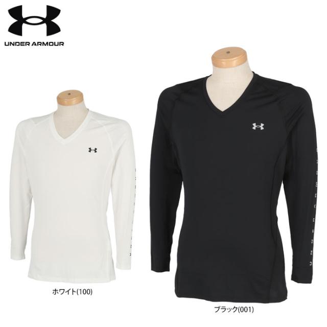 アンダーアーマー メンズ ヒートギア ロゴプリント 長袖 Vネック インナーシャツ 1371673 [2022年春夏モデル]