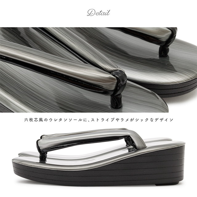 天と鼻緒は同じ素材で、メタリックや光沢、ストライプなどのデザインです。