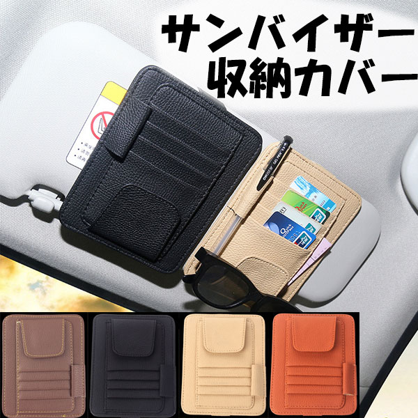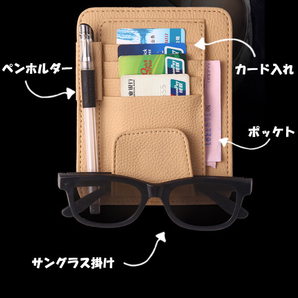 車用収納バッグ サンバイザー収納カバー 車 カード入れ 車載用 ペンホルダー サンバイザー収納 ケース 掛ける 便利