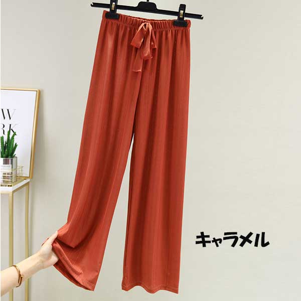 ガウチョ ワイドパンツ レディース ウエスト ゴム ボトムス ガウチョパンツ 薄手 スカーチョ ルームウェアー 無地 レディース パンツ