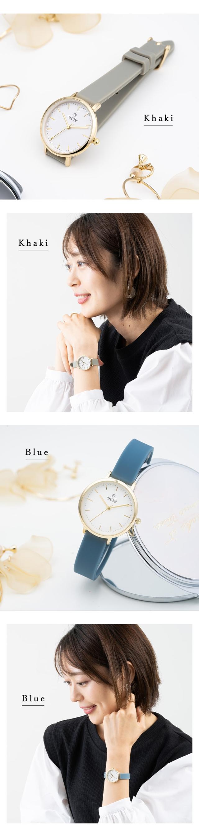 高級感があるシンプルな文字盤と、トレンドのくすみカラーで、手元をおしゃれに。