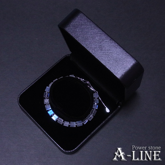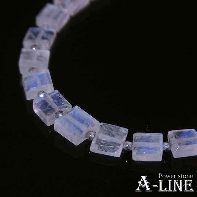 パワーストーン 高級ワイヤーブレスレット ブルームーンストーン・スクエア約5.5mm 内周16cm 高級ケース付き ppw269a