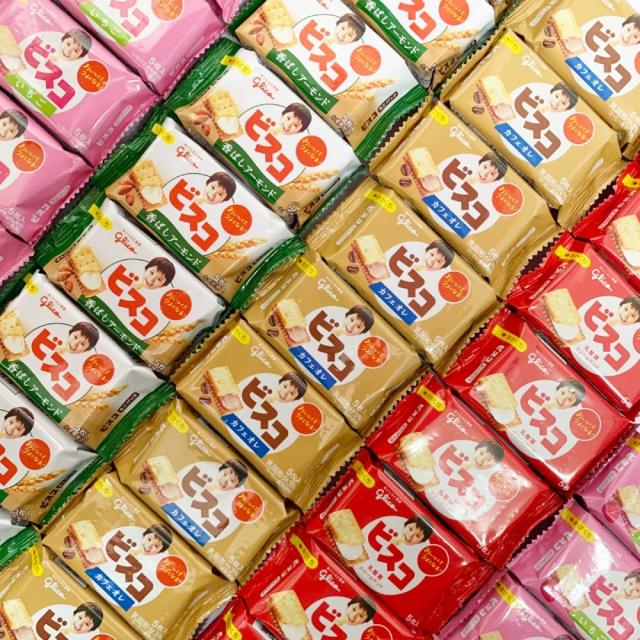 子供も大人も大好きな「ビスコ」食べ切りやすいミニパックシリーズ、全種類そろえました!お子様のおやつに!仕事の休憩時のおやつに!みんなに配って喜ばれる一品です。