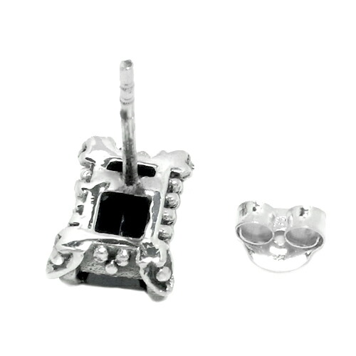 ブラックジルコニア スクエア 一粒 スタッドピアス 1P 片耳用 シルバー シンプル ベーシック 大粒 一粒ピアス キュービックジルコニア