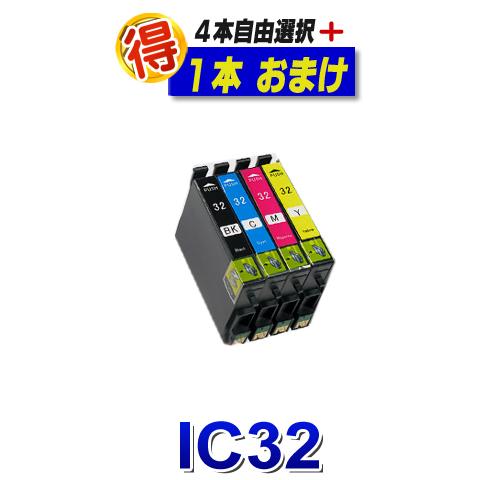 IC4CL32 エプソン 互換インク プリンターインク IC32 4本自由選択+1本 EPSON 互換インク カートリッジ 対応プリンター L-4170G PM-A700 PM-A750 PM-A850 PM-A850V PM-A870 PM-A890 PM-D600 PM-D750 PM-D750V PM-D770 PM-D800 純正インクよりお得