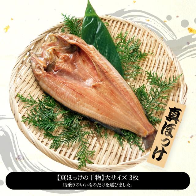 北海道 真ほっけ 開き 特大サイズ 3枚 無添加 干物 送料無料 一夜干し ひもの 国産 人気グルメ 海鮮 海の幸 ギフト オススメ 酒の肴 お取り寄せ グルメ 魚 おつまみ つまみ 晩酌 おいしい ギフト 贈答 お誕生日 プレゼント 母の日 父の日 敬老の日 内祝い お祝い ほっけ