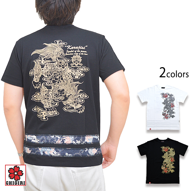 唐獅子ボディ2本ライン半袖Tシャツ CHIGIRI CHS49-681 和柄 和風 ちぎり チギリ