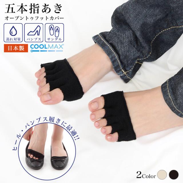 日本製 5本指 ソックス オープントゥ 五本指あき フットカバー パンプスカバー (mm-4768-1P)メール便【送料200】 レディース コットン 靴下 5本指靴下 COOLMAX 春夏 秋冬 パンプスイン 重ね履き ブラック ベージュ 汗 蒸れ防止 靴擦れ防止
