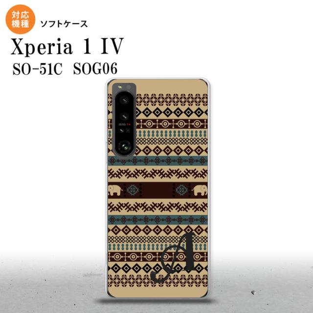 SO-51C SOG06 XPERIA 1 IV Xperia 1 IV スマホケース 背面ケースソフトケース エスニック ゾウ ベージュ ブルー +アルファベット