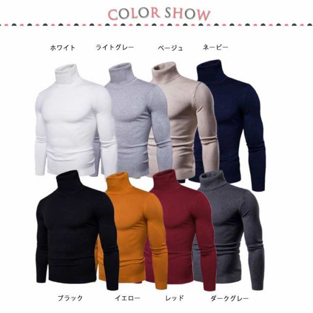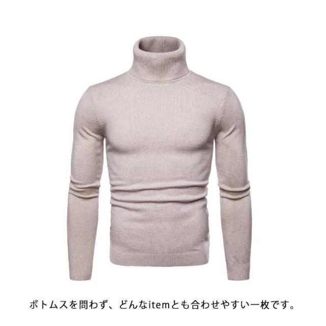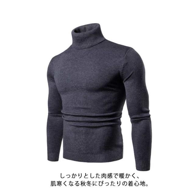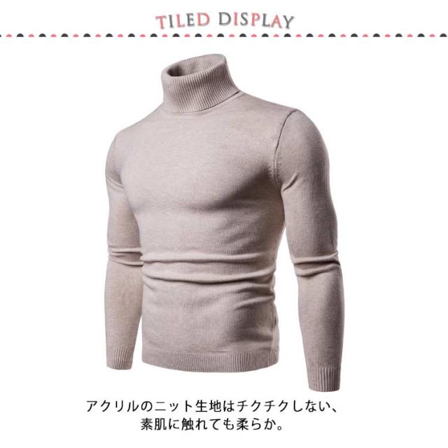 全8色選べる!ニットソー メンズ ニット タートルネック タートルニット セーター 無地 細身 秋冬 防寒 インナー トップス プルオーバー シンプル ファッション