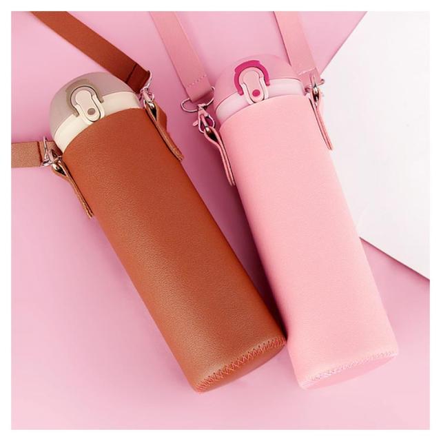 送料無料 水筒カバー 肩掛け 可愛い ペットボトルカバー 傷防止 ショルダー 斜め掛け PUレザー フェイクレザー ステンレス水筒ケース こども 大人 おしゃれ 軽量 保冷 保温 350ml 400ml 500ml ペットボトルホルダー シンプル かわいい