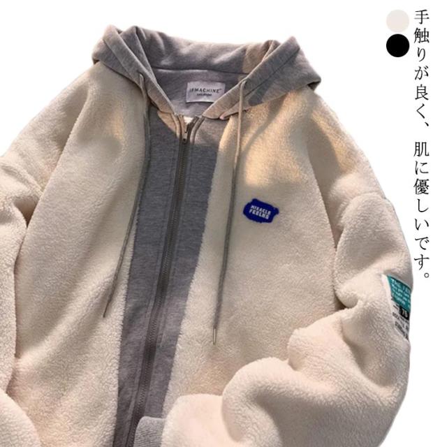 フリースジャケット フリースコート メンズ レディース 男女兼用 ボアブルゾン ボアジャケット 大きいサイズ フード付き もこもこ 暖かい 防寒 秋冬 パーカー アウター オーバーサイズ おしゃれ ゆったり
