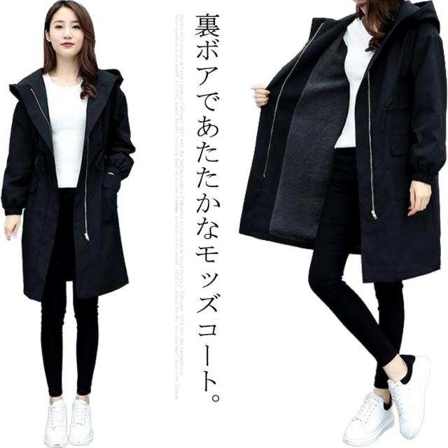 モッズコート レディース 裏ボア 裏起毛 ロングコート フード付き ロング丈 長袖 アウター 厚手 ジャケット 防寒 暖かい 秋冬 ボアコート ライトアウター ロングコート 小顔 ミリタリー 大きいサイズ カジュアル ゆったり