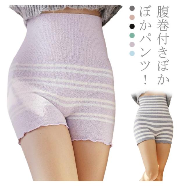 腹巻きパンツ はらまきパンツ レディース ロング腹巻 腹まき ボクサーパンツ ペチパンツ ボーダー柄 毛糸 もふもふ マタニティ 妊活 下着 妊婦 インナー 温活 起毛 暖かい 温める ウエストウォーマー 冬用 秋冬 冷え取り