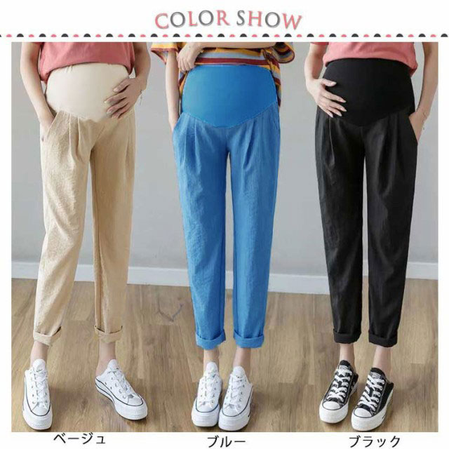 マタニティ パンツ イージースラックス ボトムス テーパードパンツ 紐付き 春 秋 薄手 オフィス テーパード ズボン ポケット付 無地 スーツ 通勤 仕事 妊婦 妊娠 初期 中期 後期 妊婦服 結婚式 卒園式