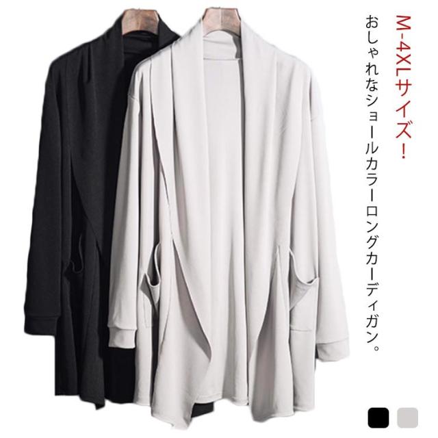 ドレープ カーディガン メンズ ロングカーディガン ショールカラー ドレープ感 カーディ ロング 薄手 羽織り ライトアウター 無地 長袖 春 夏 秋 M L XL 2XL 3XL 4XL メンズファッション カジュアル 無地送料無料