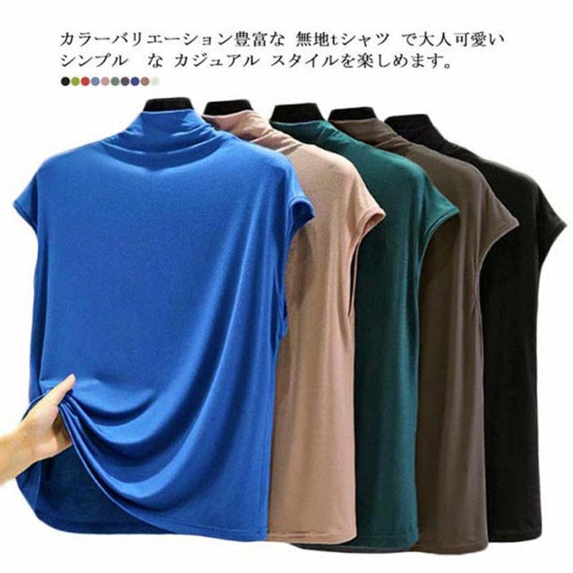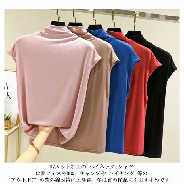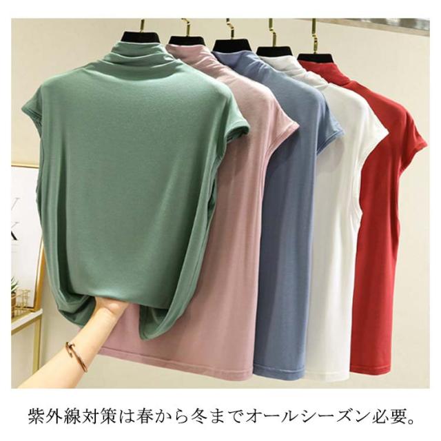 日よけ ストレッチ ノースリーブtシャツ レイヤード シャツ uvカット タートルネック ノースリーブ tシャツ レディース ハイネック タンクトップ 無地 綿 薄手 インナー トップス カットソー ボトルネック フィット 春 夏 サマー