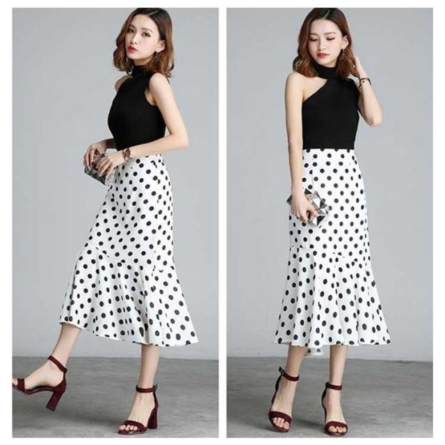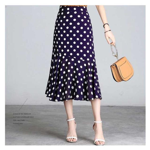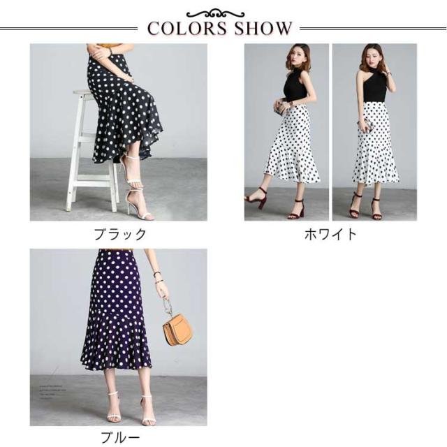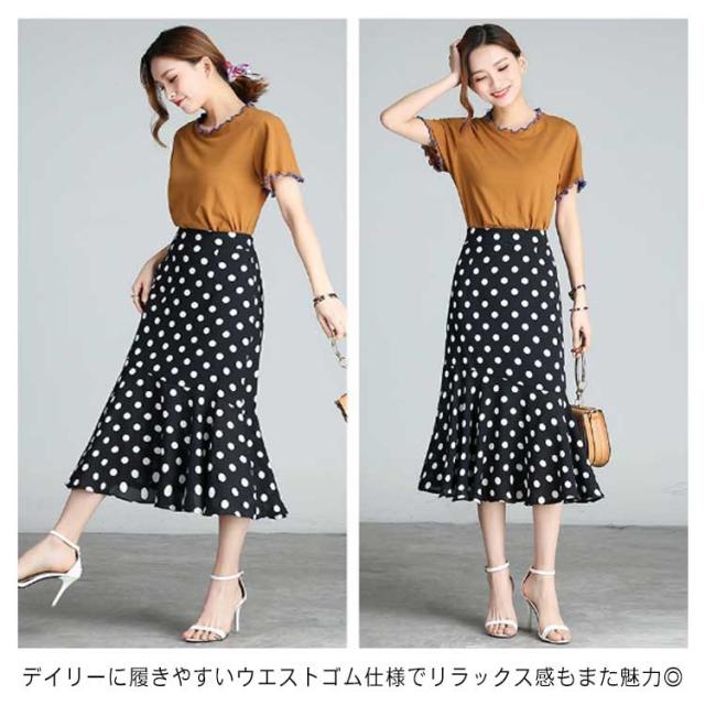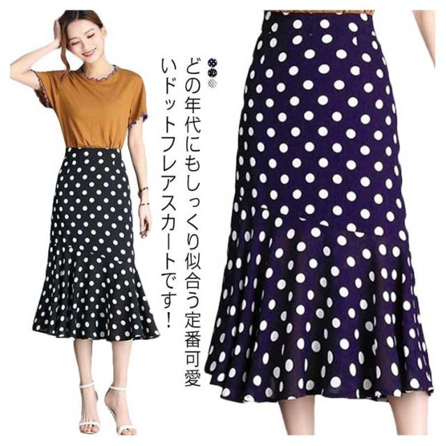 全3色×7サイズ!ロングスカート マーメイドスカート スカート 水玉柄 ペンシル タイトスカート Aライン ハイウエスト フリル付き 大きいサイズ 春 夏 秋 キレイめ 通勤 オフィス お呼ばれ お出かけ